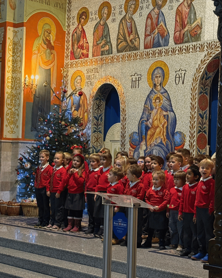 We thank all the students, teachers, and parents involved, the PTFA team for the gifts provided, and Father Dan-Dorian Cismaș for the hospitality and openness with which he welcomed us. A special appreciation goes to Miss Renata Burcă, the heart of this concert, for the dedication and passion with which she organized the entire event. The carol concert was a true testament to the unity of the Royal School community and to the magic of Christmas shared together.